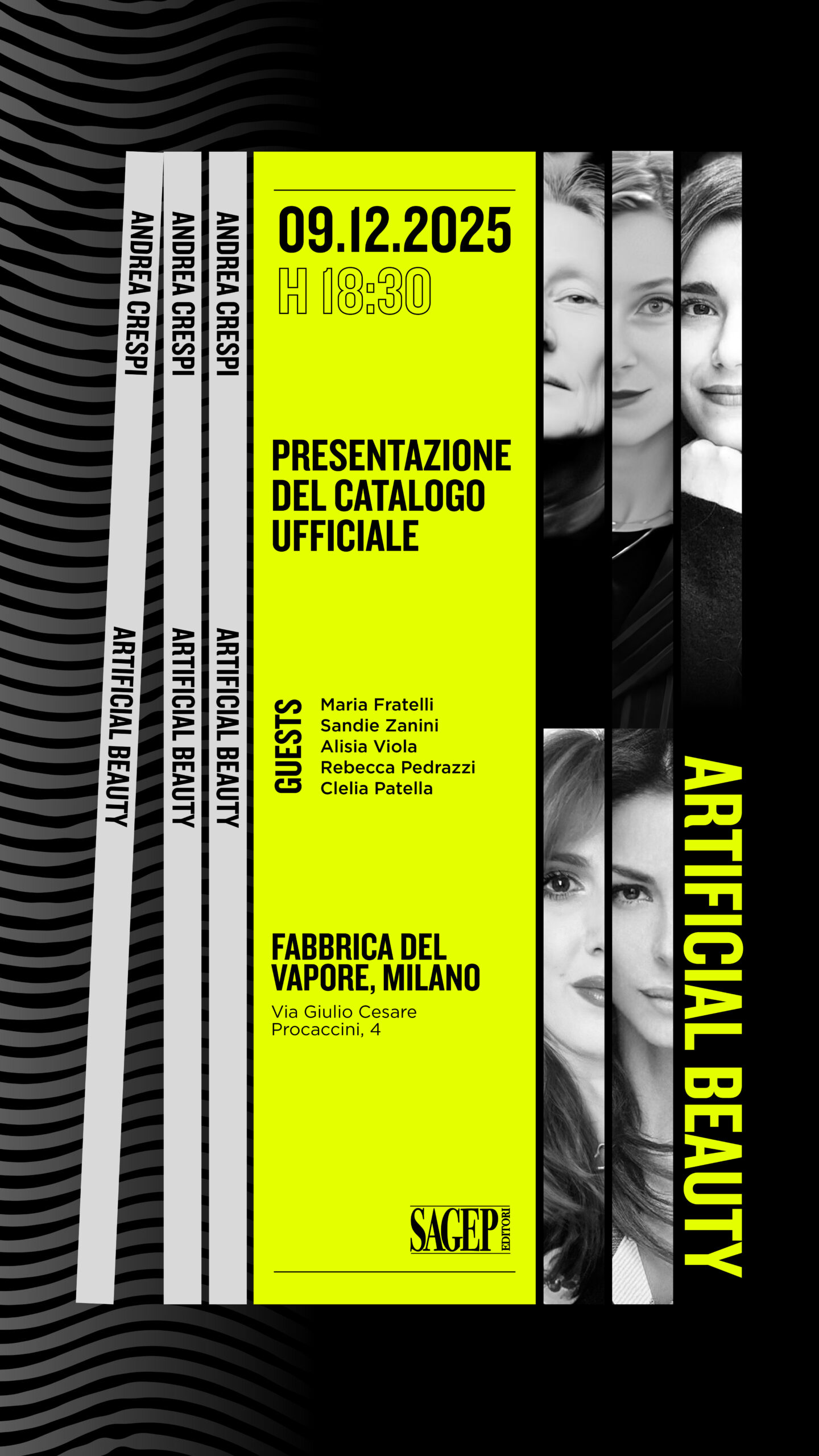 L’esposizione si sviluppa in modo dinamico e innovativo, configurandosi come un’indagine cross-mediale; allo stesso modo il catalogo abbandona l’allure accademica della tradizione per adottare una veste ultracontemporanea, ispirata all’estetica dei magazine. Dopo le presenze alla Triennale di Milano, al CAFA Art Museum di Pechino, al MAGA, a Times Square e ad Art Dubai, Andrea Crespi arriva a Milano con la sua prima grande esposizione istituzionale – curata da Alisia Viola e Sandie Zanini e co-prodotta da Fabbrica del Vapore e Comune di Milano con il patrocinio di Regione Lombardia. Un corpus di opere site specific che indagano il concetto di bellezza, osservato oggi nella sua trasformazione più radicale: non più armonia delle forme, ma territorio di sperimentazione e campo di tensione continua tra fisico e digitale, umano e macchina, emozione e algoritmo.