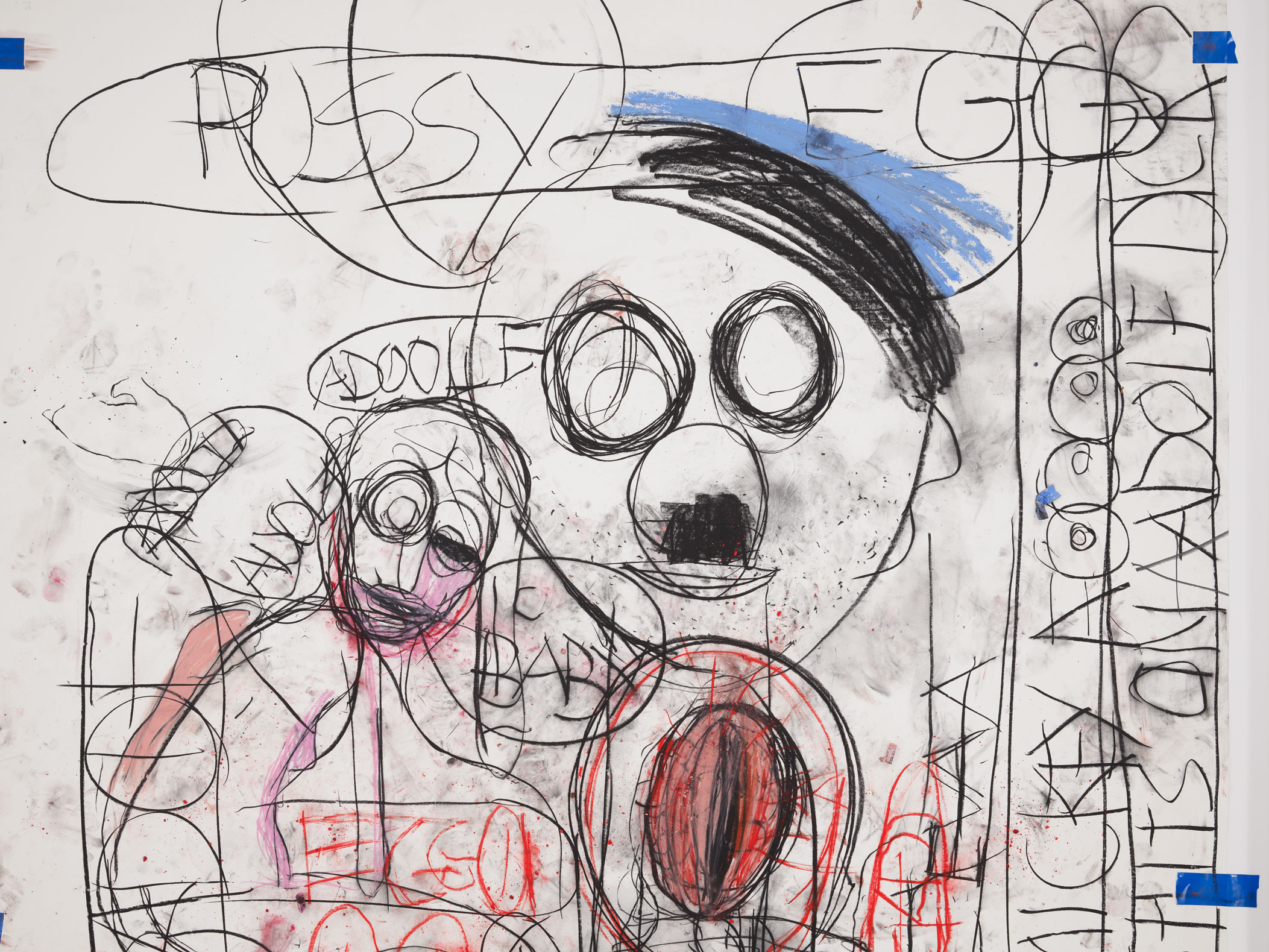 Dal 6 marzo al 16 maggio 2026 lo spazio SOLO CSV Contemporary di Madrid presenta A&E, Adolf/Adam & Eva/Eve, Drawing Sessions 2020–2022, progetto di Paul McCarthy realizzato in collaborazione con Lilith Stangenberg e prodotto insieme a Hauser & Wirth. La mostra riunisce una serie di disegni nati da sessioni performative improvvisate tra i due artisti, in cui il gesto grafico diventa registrazione diretta dell’azione e della relazione tra i performer. Non si tratta di disegni preparatori né illustrativi: sono tracce di un processo vivo, quasi documenti di una performance.