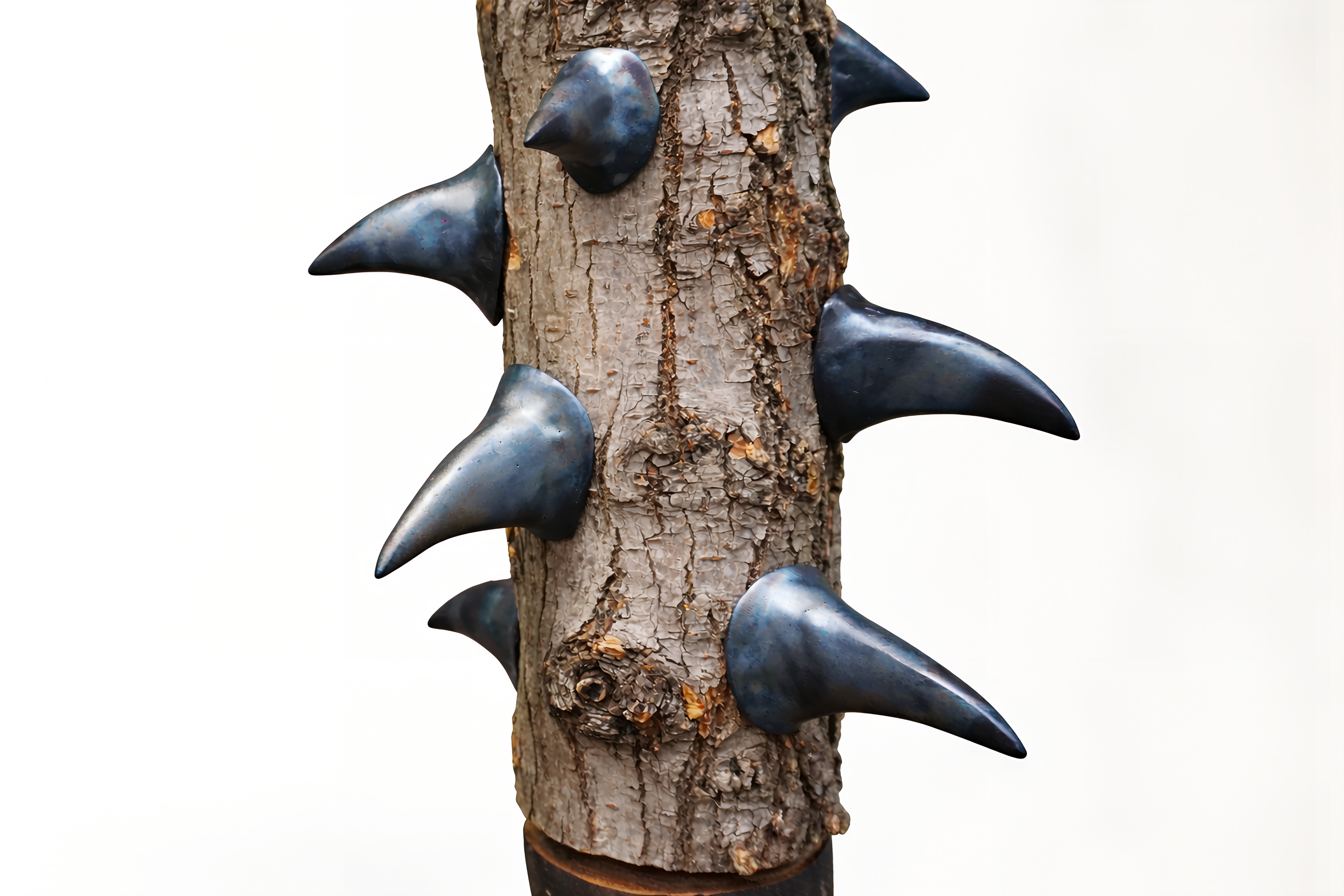 Diversa ma altrettanto significativa è la ricerca di Anna Marzuttini, sviluppata con Contea Cooperativa sociale, a partire da tronchi, rami e materiali organici provenienti dalla manutenzione del verde urbano. La sua installazione si configura come un paesaggio attraversabile in cui elementi lignei, lasciati nella loro tensione primaria, vengono attivati da interventi pittorici e scultorei. Il lavoro si colloca in una zona fertile tra naturale e costruito, e apre una riflessione sul modo in cui il gesto umano possa intervenire sulla materia senza cancellarne la forza originaria.