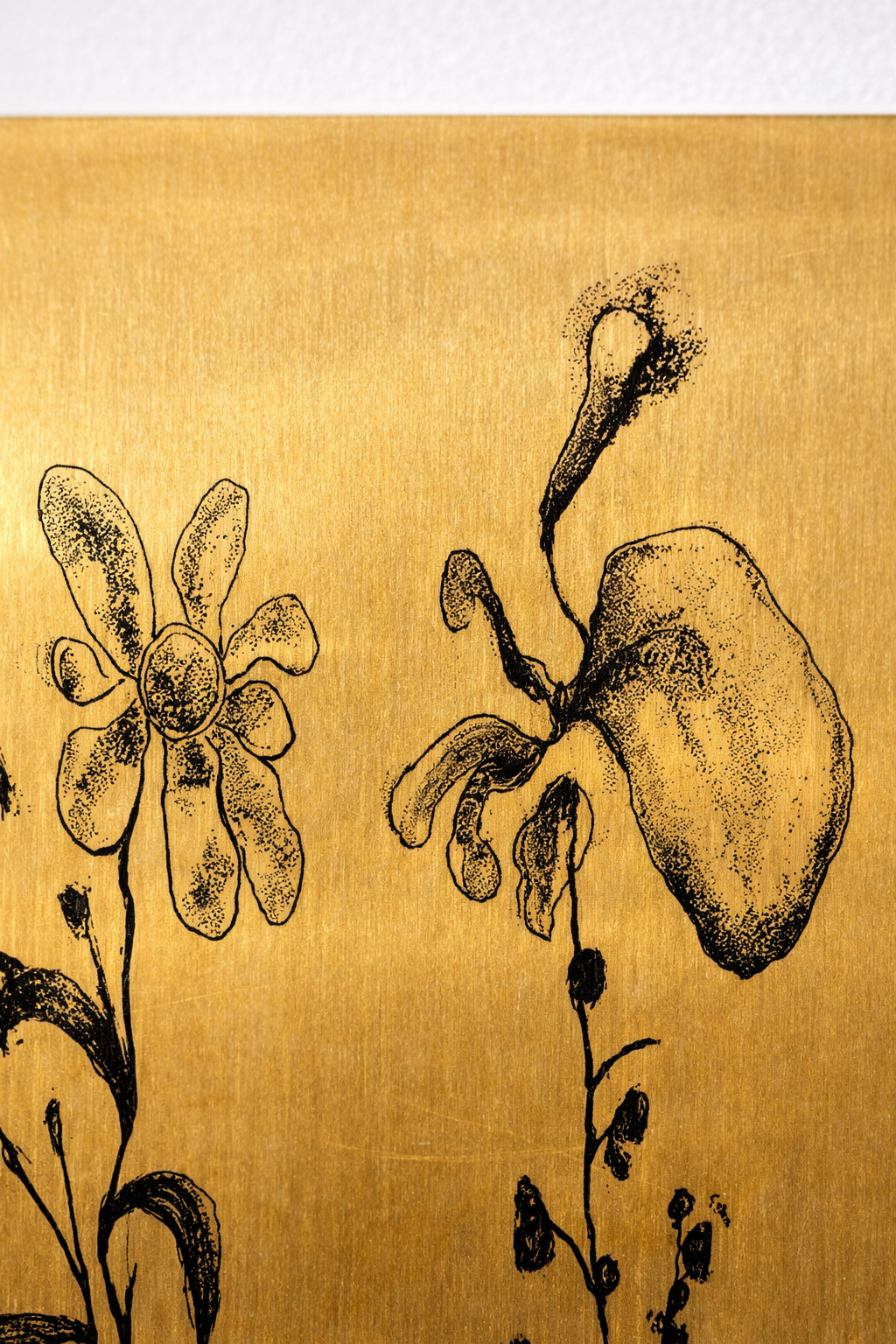 Con Nicola Facchini, in dialogo con Postir Srl, il discorso si sposta sulla persistenza dell’immagine nella materia metallica. Utilizzando lastre di ottone destinate allo scarto, l’artista interviene attraverso la serigrafia, depositando scene domestiche e nature morte su superfici segnate dalla riflessione, dall’ossidazione e dall’imperfezione. Il risultato è un lavoro misurato, silenzioso, in cui la malinconia non è mai decorativa ma si traduce in una forma di attenzione verso ciò che resiste, permane, sedimenta.